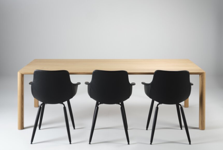 Der Massivholztisch RONDO zeichnet sich durch sein minimalistisches Design aus, welches auf klaren Linien und schlichten Formen basiert. Dieser Stil reflektiert die Ästhetik der modernen Architektur und schafft eine ruhiges und aufgeräumtes Umfeld.